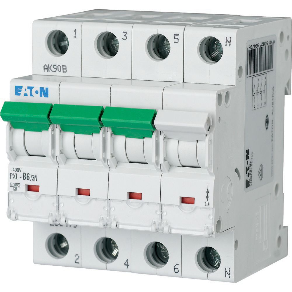 9. Wyłącznik nadprądowy MCB, Typ C, 4-biegunowy, 6A, 400V, Eaton, PXL 1046.11