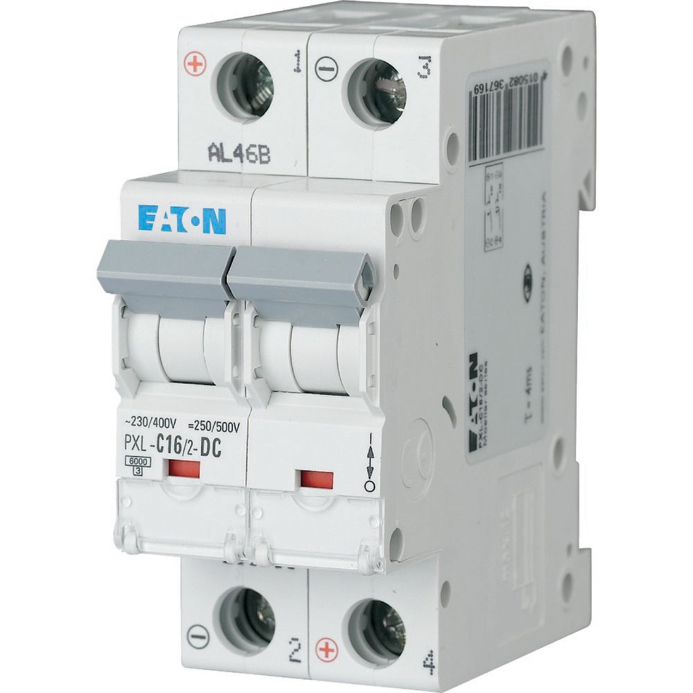 6. Wyłącznik nadprądowy MCB, Typ C, 2-biegunowy, 16A, 440V, 48V, Eaton, PXL 996.30