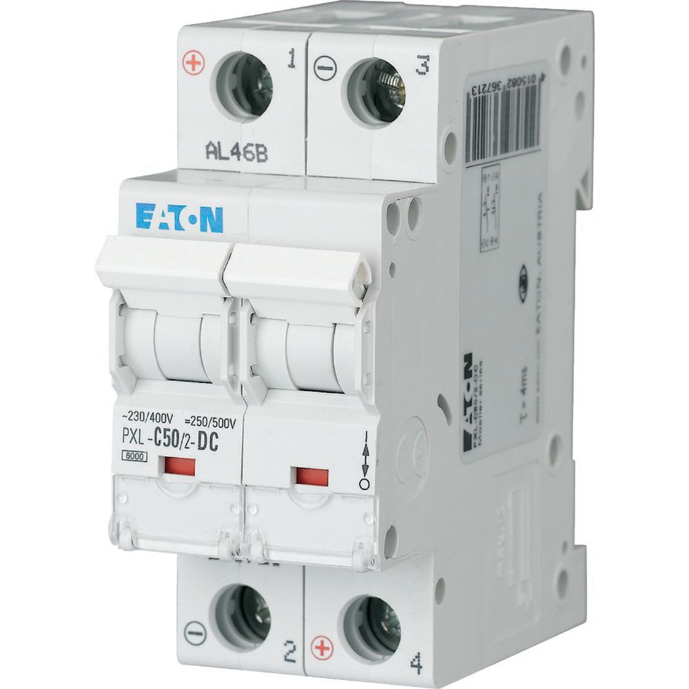 Wyłącznik nadprądowy MCB, Typ C, 2-biegunowy, 50A, 440V, 48V, Eaton, PXL