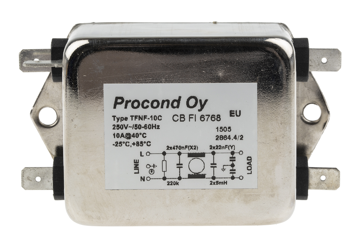 15. Filtr RFI 10A 220kΩ 250 V AC 400Hz 5 x 2 mH RS PRO Montaż w obudowie 338.30