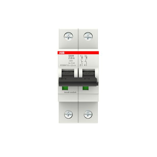 9. Wyłącznik nadprądowy MCB, Typ Z, 2-biegunowy, 20A, 400V, 125V, ABB, S200M 493.44