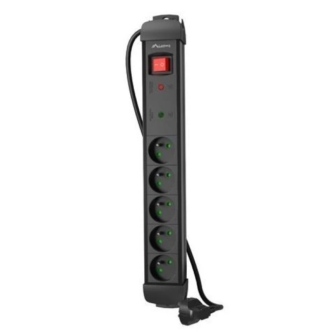 Listwa zasilająca antyprzepięciowa LANBERG na 5 gniazd 2P+Z z wyłącznikiem czarna 5m