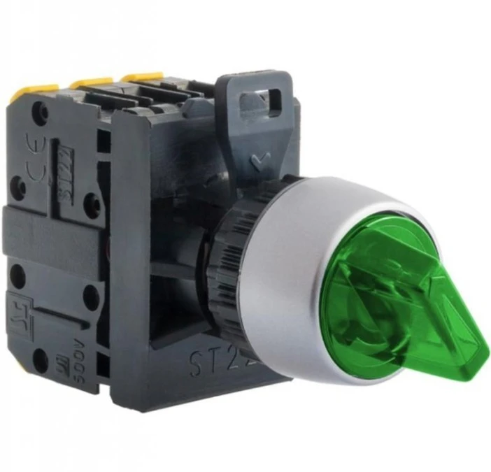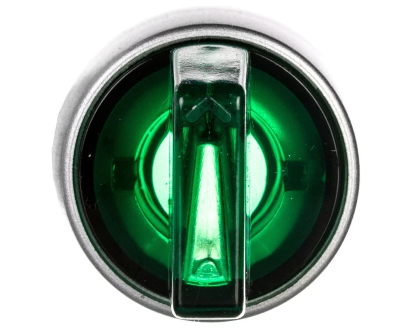 Przycisk kompletny pokrętny piórkiem dwupołożeniowy podświetlany zielony 1 zwierny 1 rozwierny ST22-PL.Z-11-24-LED\AC/DC