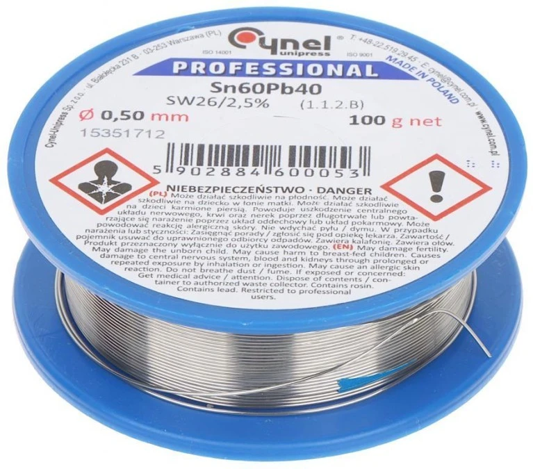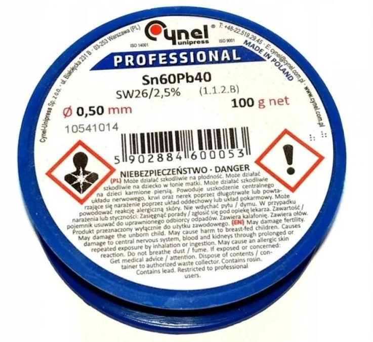 7. CYNEL UNIPRESS Cyna 0,50mm 100g Sn60Pb40 SW26/3/2.5 spoiwo lutownicze PROFESSIONAL 39.91