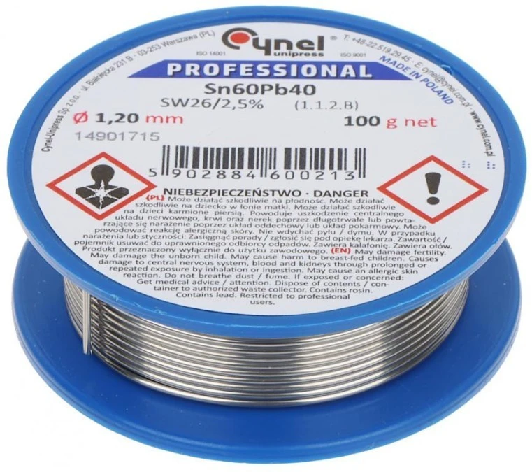 5. CYNEL UNIPRESS Cyna 1,50mm 100g Sn60Pb40 SW26/3/2.5 spoiwo lutownicze PROFESSIONAL 39.82