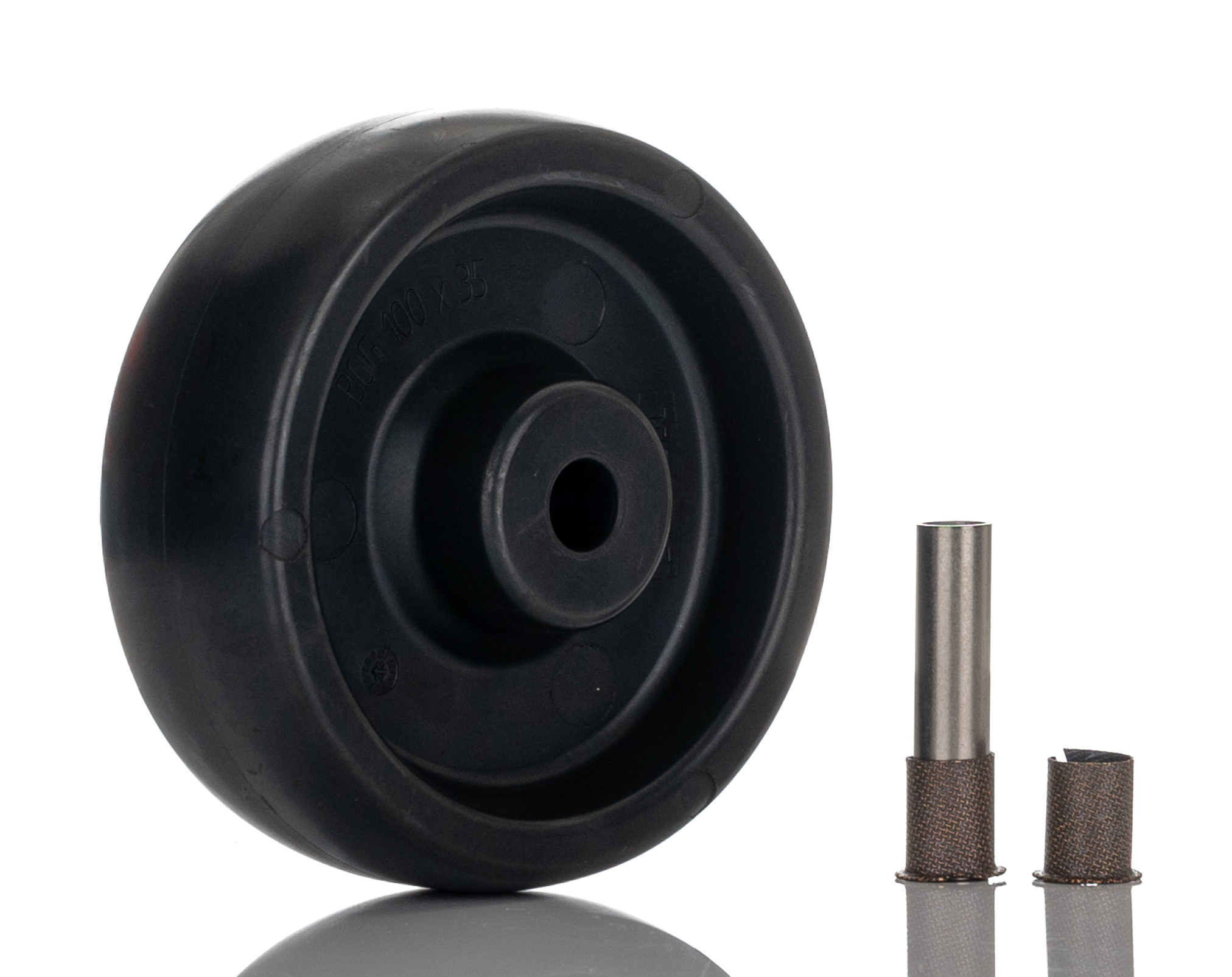 13. Kółko do wózka, Twardy materiał syntetyczny odporny na ciepło, Czarny, obc.: 250kg, śred.: 100mm, szer.: 35mm 63.63