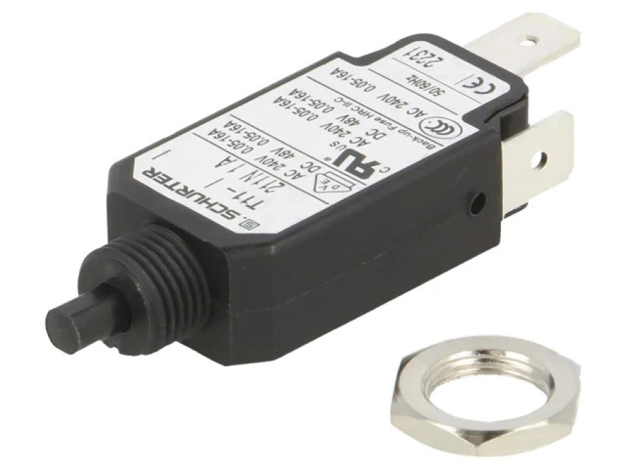 14. T11-611-1.6A Wyłącznik nadprądowy Iznam: 1,6A Uznam: 240VAC 48VDC SPST Bieguny: 1 24.78