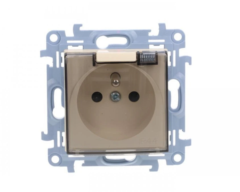 Simon 10 Gniazdo pojedyncze IP44 z uszczelką z przesłonami torów prądowych klapka transp. kremowy, szybkozłącza, CGZ1BCZ.01/41A