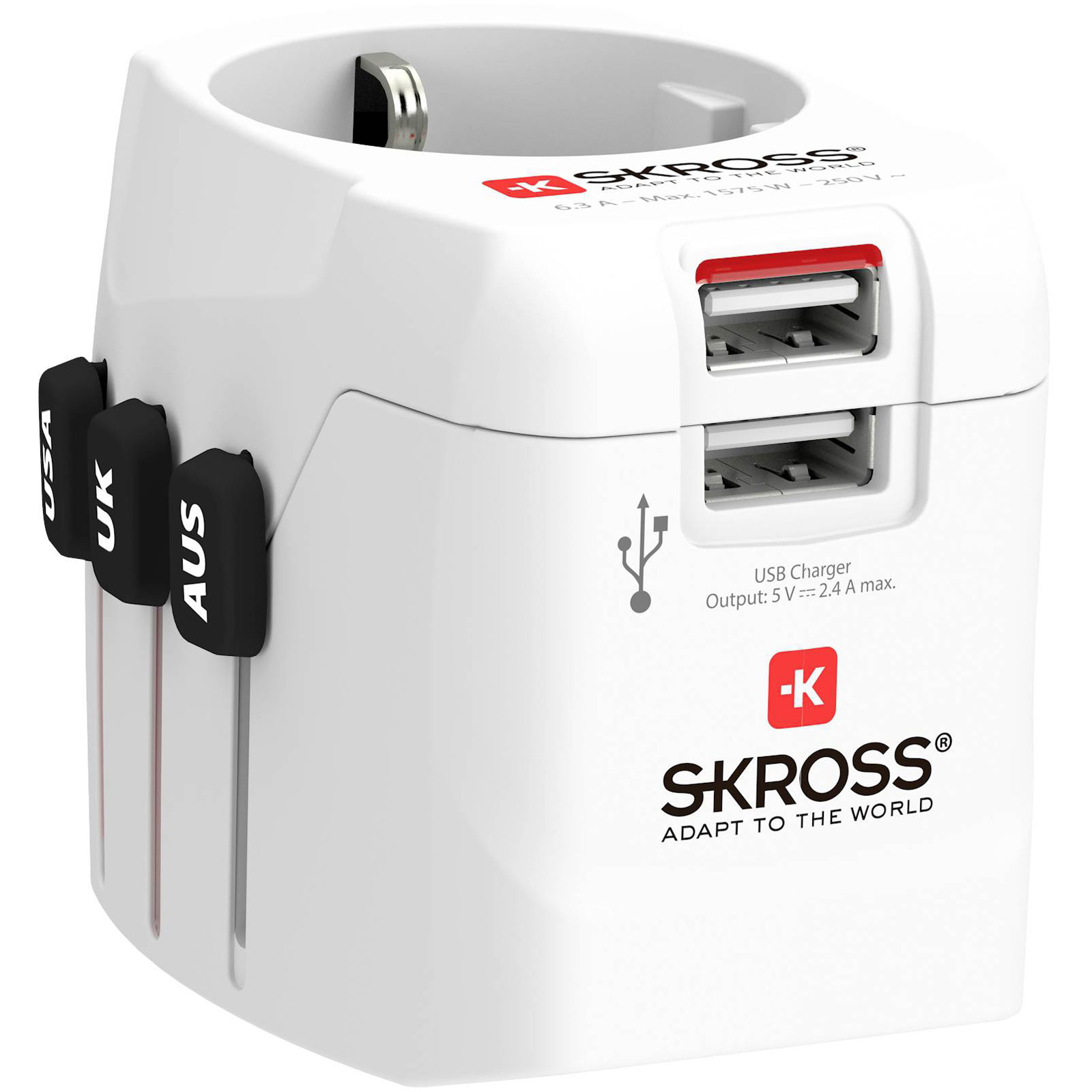 Skross 1302470 Pro Light USB Adapter for 200+ countries 1575W Dual USB