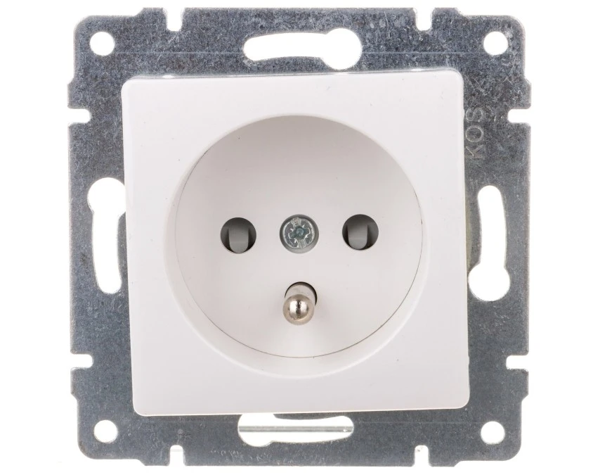 6. VENA Gniazdo pojedyncze z uziemieniem z przesłoną torów prądowych bez ramki śnieżna biel 510234 KOS 21.13