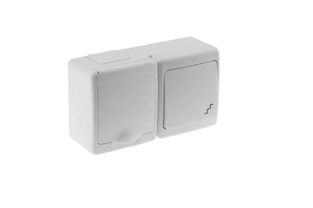 BETA Wyłącznik hermetyczny pojedynczy, schodowy i gniazdo BETA pojedyncze, białe, biała klapka, IP44 /D.3112BGWS/1/