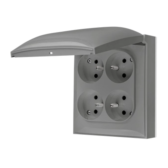 Simon Aquaclick Gniazdo IP44, 4-krotne z uziem., szybkozłącza, klapka w kolorze, szary ACGZ4C/16