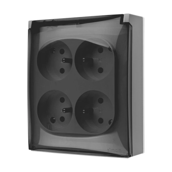 Simon Aquaclick Gniazdo IP44, 4-krotne z uziem., klapka w kolorze, z przesł. torów prąd. szary ACGZ4Z/16