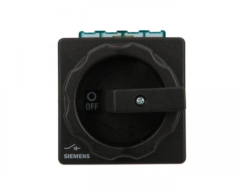 7. Rozłącznik główny 3P 32A 11,5kW AC23A 400V montaż tablicowy otwór centralny 22.5 mm pokrętło czarne 3LD3254-0TK51 134.48