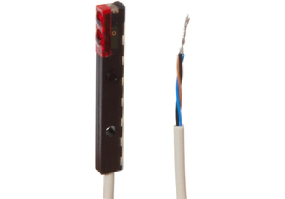 14. Czujnik optyczny odbiciowy 45x6,2x4mm Sn: 50mm 11-30VDC PNP/NPN push-pull złącze kablowe 4-PINowe PVC 2m IP65 OTQ40103 1408.05