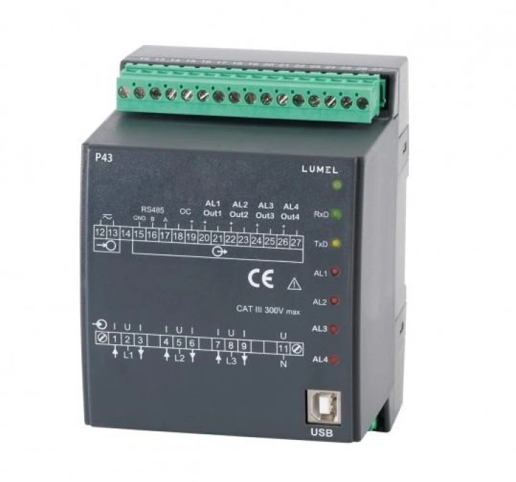 Przetwornik sieci 3-fazowej 2:we I 5A(X/5) 1:we U 3 x 57,7/100V 1:zas. 85-253Vac, 90-320Vdc 1:bez wyj. analog. P43 211100M0