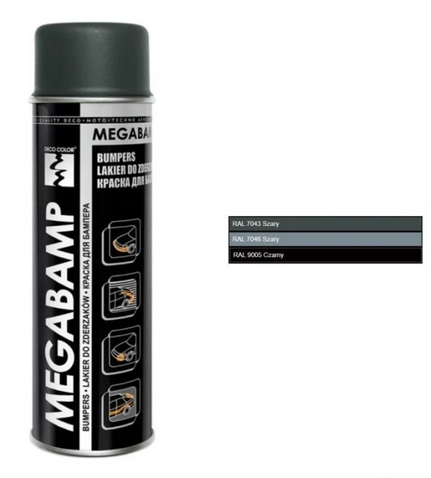 14. Lakier farba do zderzaków plastikowych PP ABS szary RAL7043 500ml MEGABAMP 22.51