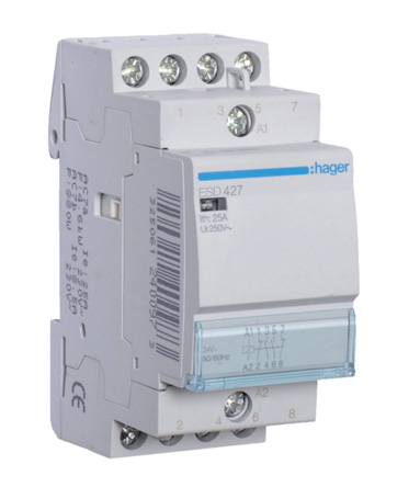 Stycznik 24 V AC Hager styki: 4 1,9 kW 25 A 2NO + 2NC Montaż na szynie DIN Śruba ESD427