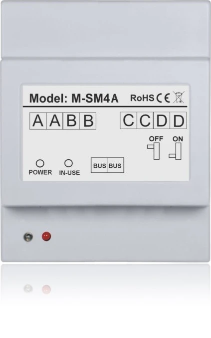 Moduł rozdzielenia sygnału w rozbudowanych instalacjach Zawiera wzmacniacz z automatyką M-SM4A