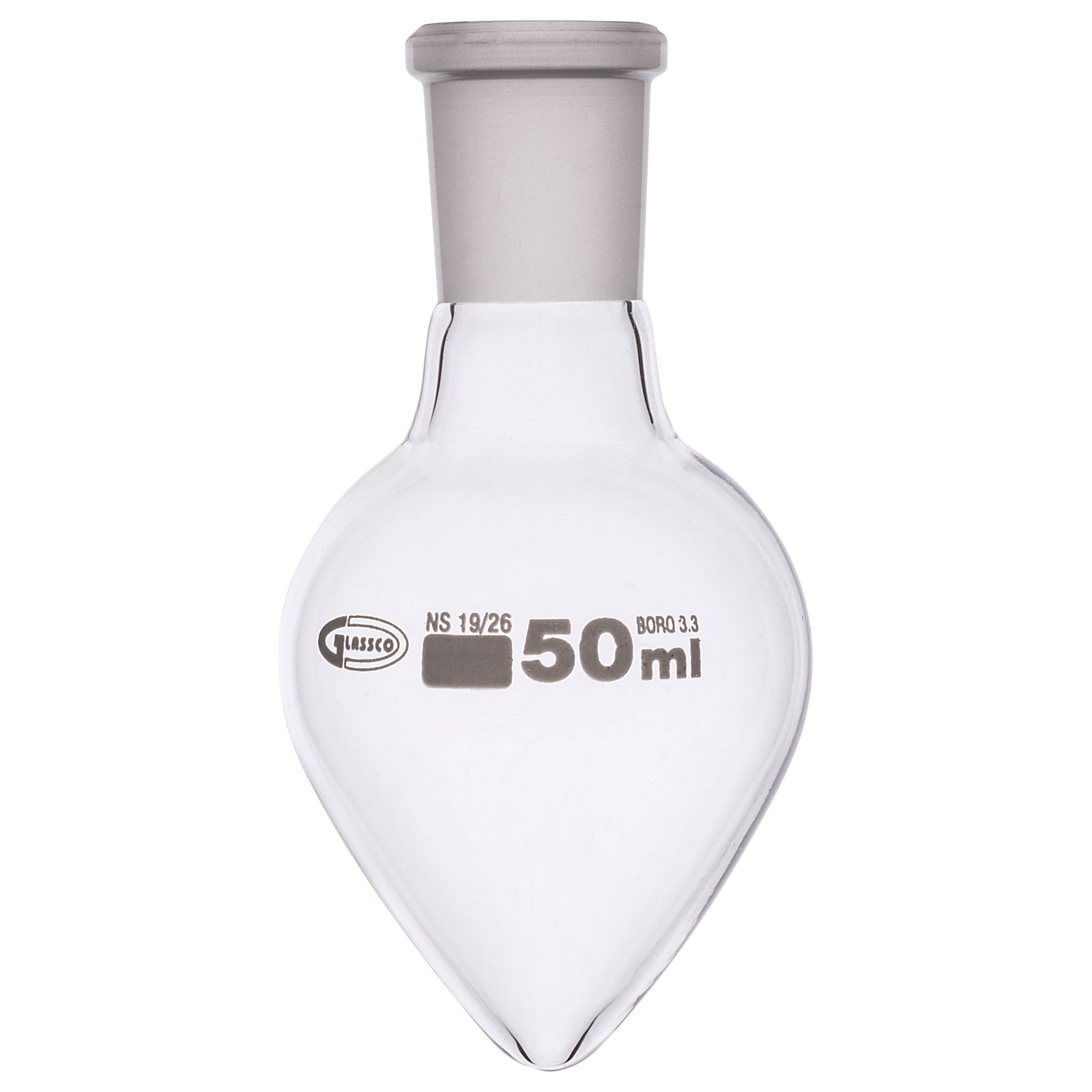 Glassco Pear Shape Single Neck Flask 50ml, 19/26 Pack of 10