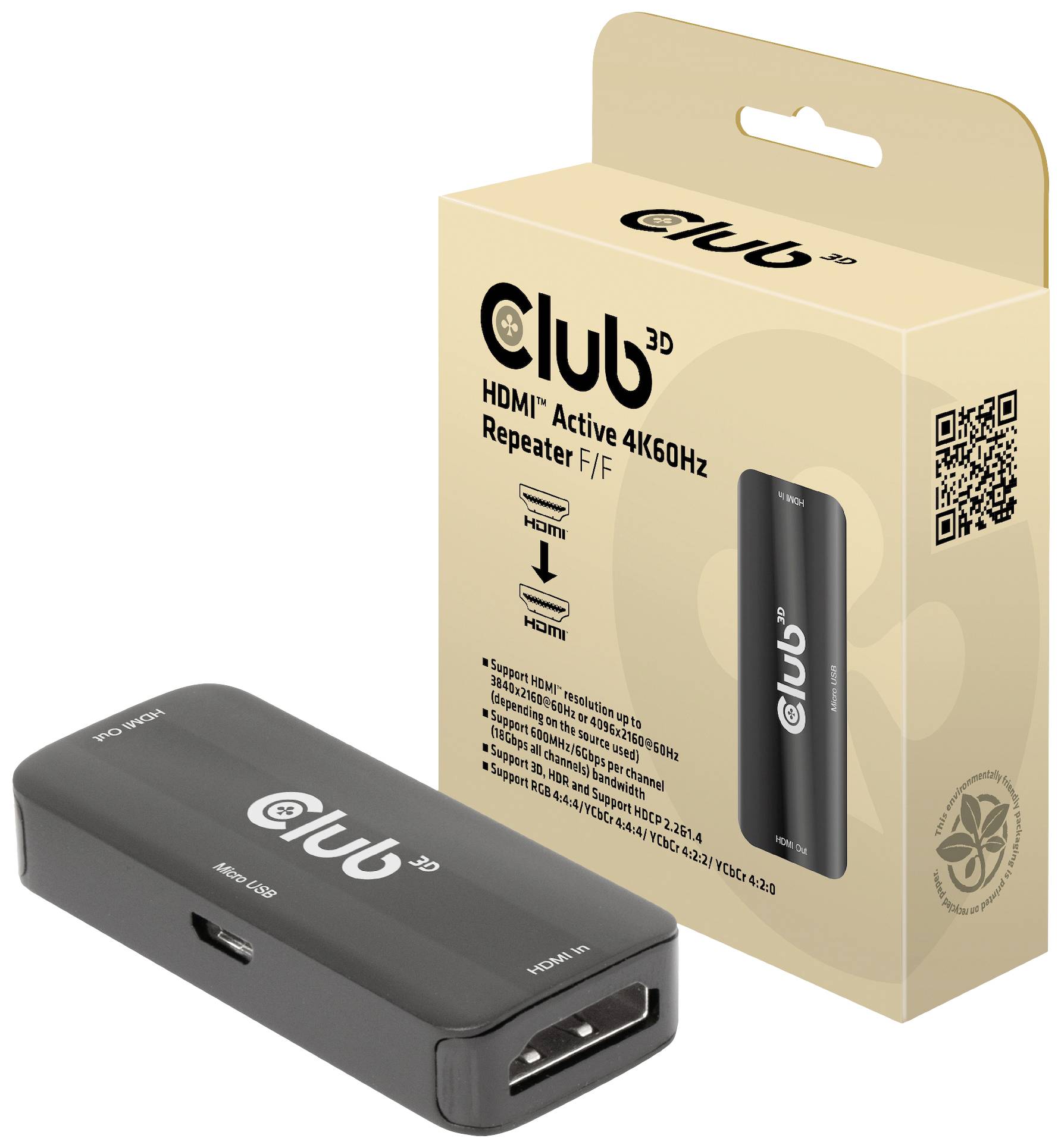 Repeater club3D CAC-1307 CAC-1307, HDMI, Micro USB - HDMI, 3840 x 2160 px