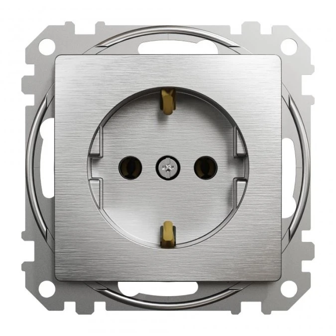 Gniazdo schuko, szczotkowane aluminium, efekt metalu, Sedna Design i Elements SDD170025