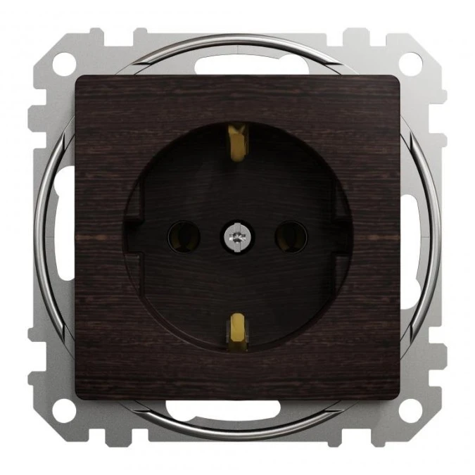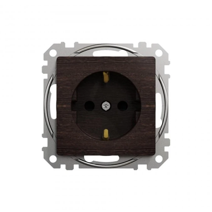 10. Gniazdo zasilające schuko z przesłonami torów prąd., wenge, efekt drewna, Sedna Design i Elements SDD181021 118.83
