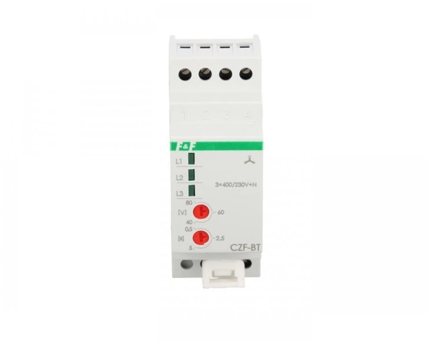 2. Czujnik zaniku i asymetrii faz z reg. progiem asymetrii i czasem zadziałania 3-fazowy 1P 400V+N CZF-BT F&F FILIPOWSKI 108.49