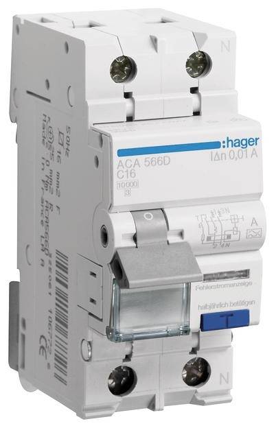 Wyłącznik różnicowoprądowy/automatyczny Hager ACA566D 2 styki 16 A 0.01 A 240 V