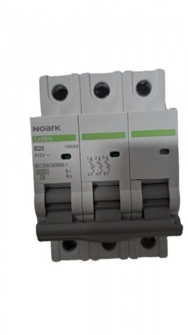 7. Wyłącznik nadprądowy S bezpiecznik 3-fazowy C20 (C 20A) 3-biegunowy 3P (400V AC) 3-modułowy NOARK 41.02