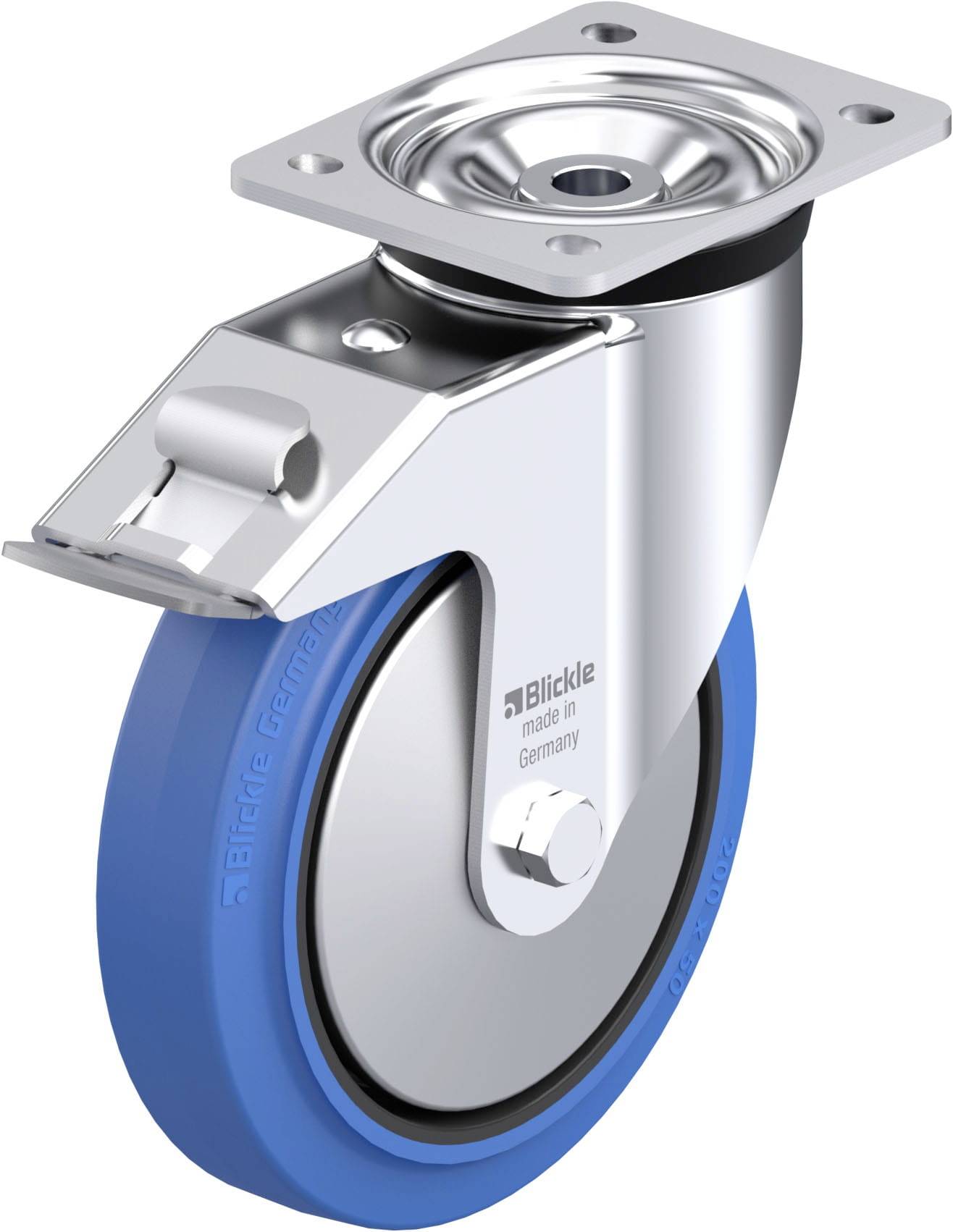 Blickle 851685 LUH-POEV 200KA-SB-FA Rolka obrotowa z blachy stalowej Średnica koła: 200 mm Maksymalne obciążenie: 500 kg