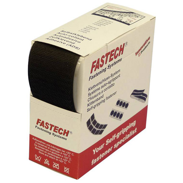 FASTECH B50-SK-L-999905 Hook-and-Loop Tape 5m x 50mm Black Hotmelt Adhesive