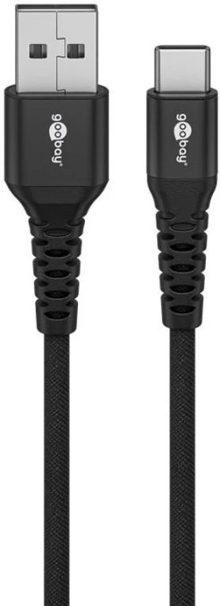 Miękki kabel USB-C do USB-A, tekstylny, z metalowymi złączami, czarny 74528 /3m/