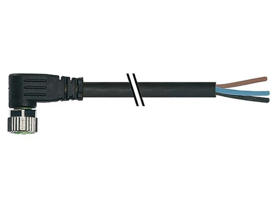 Złącze okrągłe M8 żeńskie kątowe z wolnym końcem przewodów 3pin 7000-08081-6300300