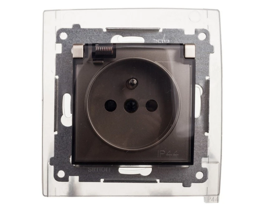 2. Simon 54 Gniazdo bryzgoszczelne z/u IP44 z klapką transparentną złoty mat DGZ1BZ.01/44A 37.98