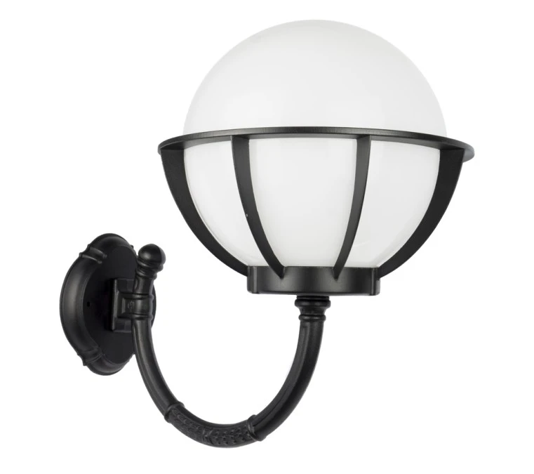 Kinkiet zewnętrzny Kule Classic K 3012/1/K 300 P OP, E27 max 100W, kolor czarny, klosz biały 0438621