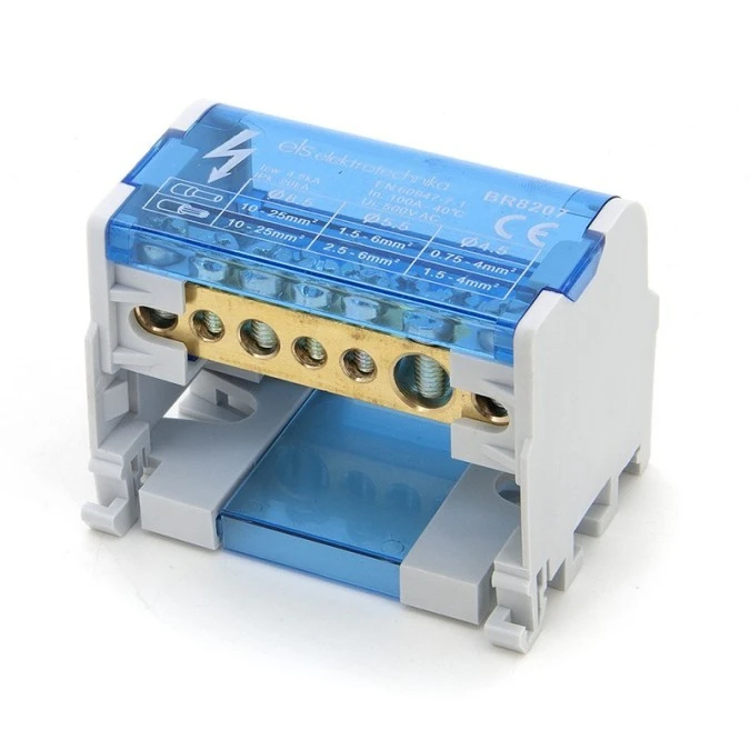 Blok rozdzielczy główny (max. 16mm2) 80A na szynę DIN TH35 niebieski ADELID