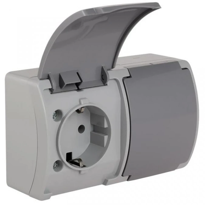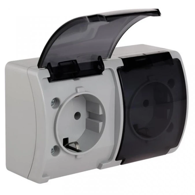 Gniazdo Podwójne Schuko Natynkowe Ip44 Popiel/Grafit 182-08 Dv 8394