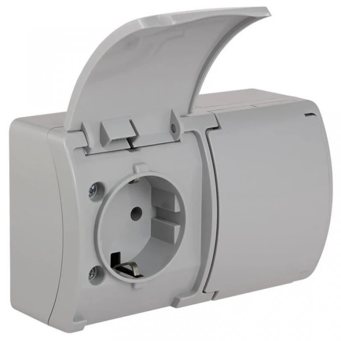 FALA Łącznik hermetyczny jednobiegunowy + gniazdo pojedyncze klapka przezroczysta IP44 popiel/grafit ZH-Ł1G/71/21/d