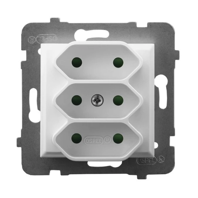 SONATA Gniazdo potrójne bez uziemienia EURO białe GP-3R/m/00 OSPEL