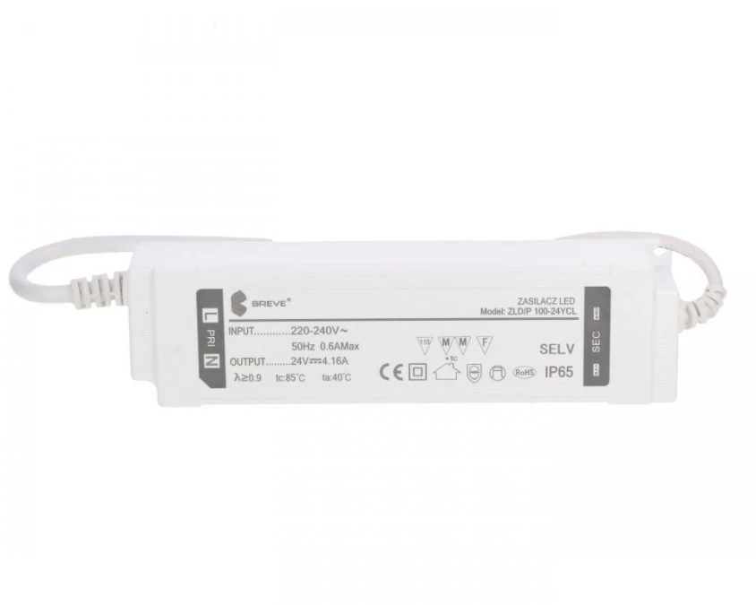 Zasilacz LED 24V DC 100W 4,16A IP65 /z zabezpieczeniami/ ZLDP 100-24YCL 19724-9023