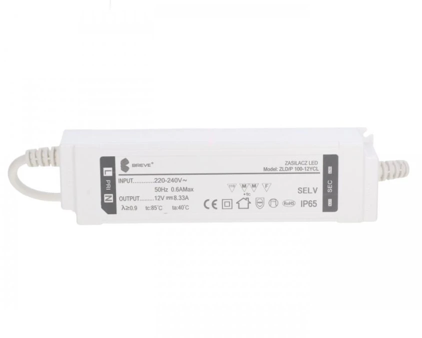 Zasilacz LED 12V DC 100W 8,33A IP65 /z zabezpieczeniami/ ZLDP 100-12YCL 19712-9040