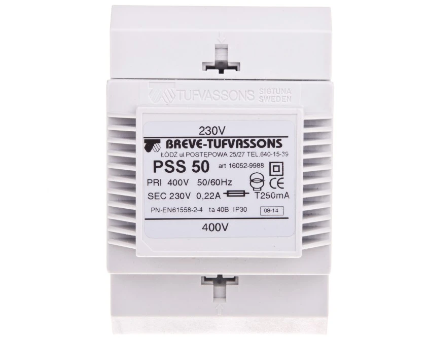 9. Transformator 1-fazowy modułowy separacyjny PSS 50 400/230V 0,22A, na szynę DIN, IP30, Ta 40, 16052-9988 208.36