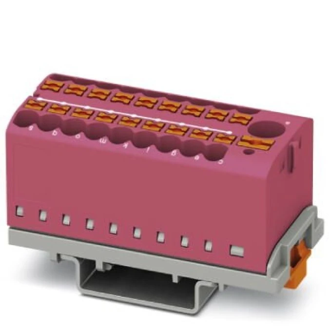 9. Blok rozdzielczy PTFIX 6/18X2,5-NS35 PK, różowe złącze przemysłowe - 18 punktów przyłączeniowych o przekroju 2,5mm2 42.21