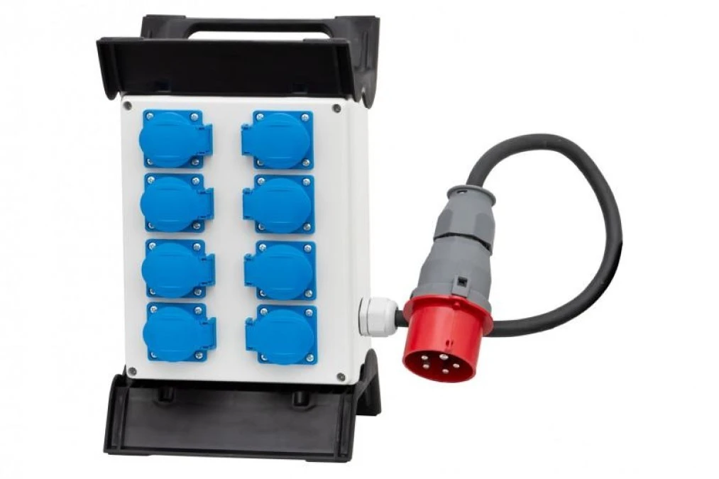 Rozdzielnica R-240 - gniazda 8x230V, przewód OW 5x2,5mm2-1,5m z wtyczką 16A 5p na stelażu plastikowym