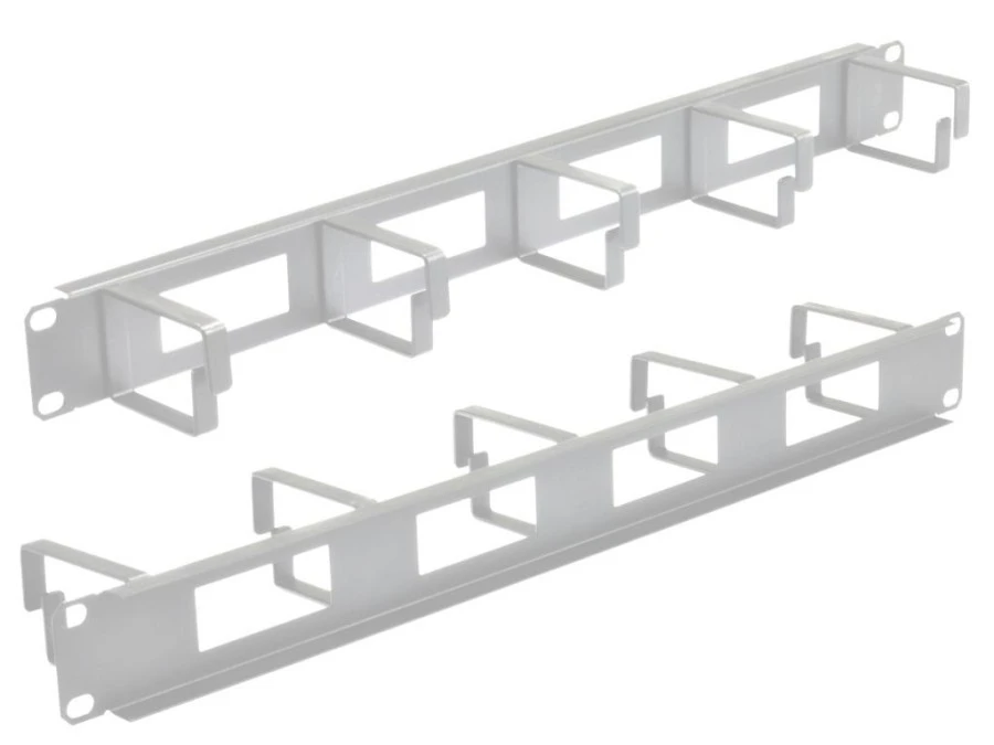 10. Organizator kabli RACK 19 1U metalowy szary z 5 uchwytami i przepustami 34.06