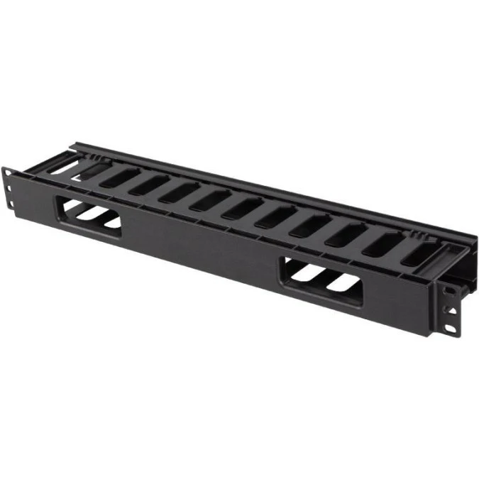 Organizator kabli RACK 19 1U grzebieniowy zamykany plastikowy czarny z przepustami Lanberg