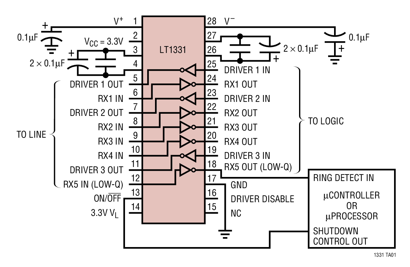 5. 5V RS232 Transceiver with 3V Logic Interface and One Receiver Active in Shutdown Sample