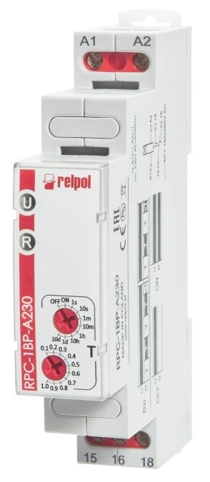 15. Przekaźnik czasowy 1P 1sek-10dni 230V AC 50/60 Hz opóźnione załączenie RPC-1EU-A230 863206 355.31