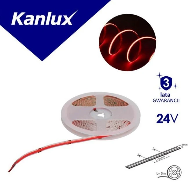 Taśma LED LCOB 10,5W/M 24IP00-R 200lm/m barwa czerwona rolka 5mb 3 lata Gwarancji 39779